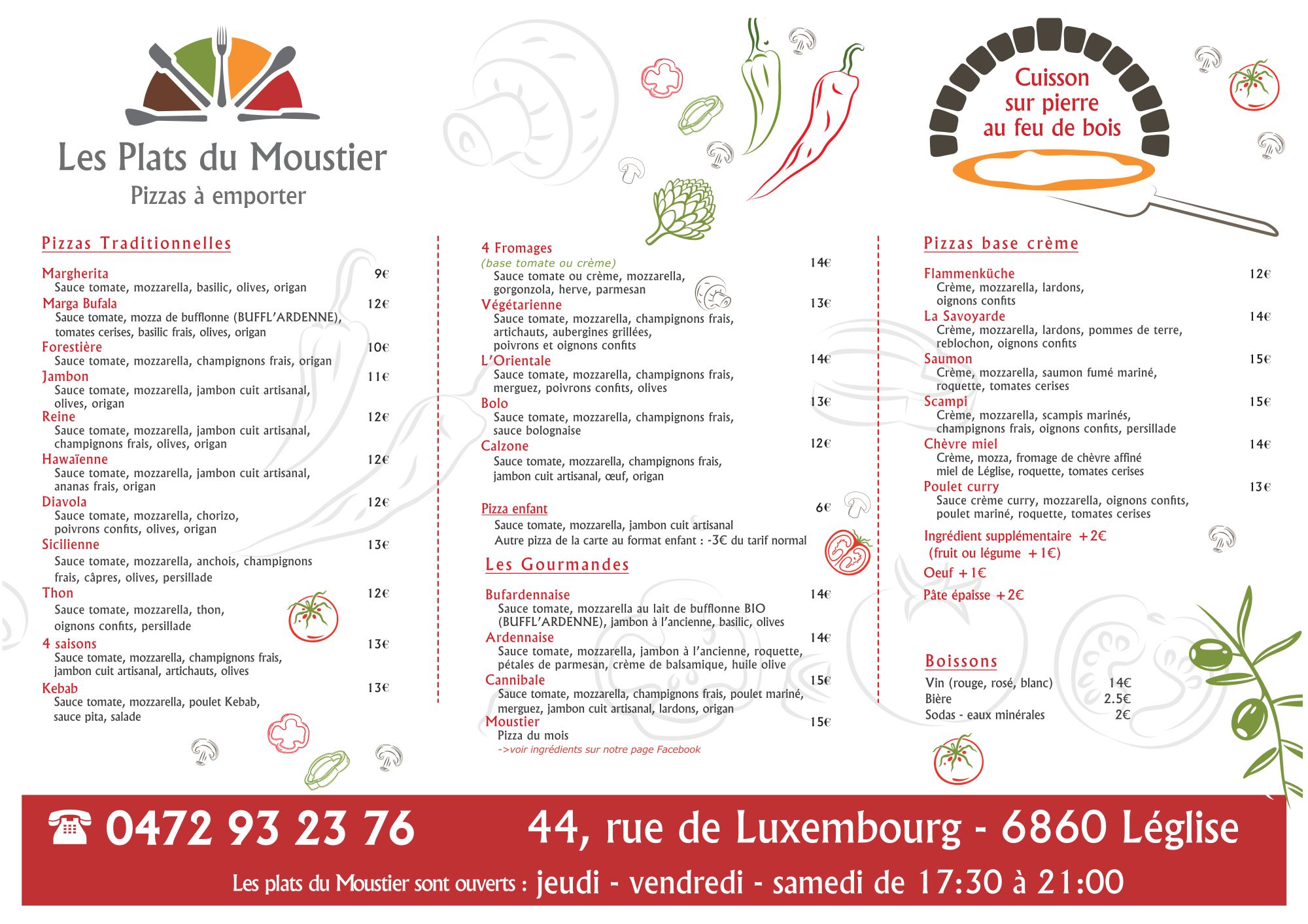 Les Plats du Moustier est une pizzeria conviviale située au cœur de Léglise, réputée pour ses pizzas savoureuses à emporter préparées à partir d’ingrédients frais et locaux. 🍕✨