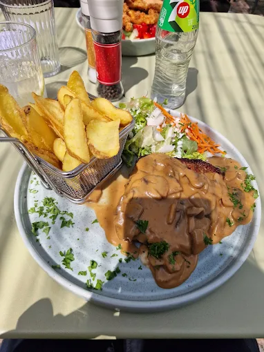 Auf halbem Weg zwischen einer Brasserie, einem Restaurant und einer Teestube.